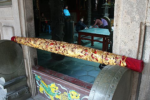 横亘在大殿正门的一根雕刻精美的木头叫“皇档”,只有皇帝或钦差大臣入殿时才会撤下