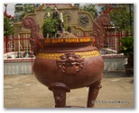 简介: 据悉,义润关帝庙的这块土地之前是一个小乡村,地宽人少,人们在这里专设了一个“祭祀神灵”的亭,嗣德五年(嗣德乃越南一阮朝皇帝的称号),即公元1852年,此地曾获皇帝册立为“本境城隍”,地盘逐渐延伸至现今的第五郡第十三坊;1879年,义润亭得到重修,周围的墙砖,都根据中国古代建筑方式的“國“字形来布置,自此,义润亭关帝庙才逐步改进为现今的“义润关帝庙”。 1871年,成立本庙庙会,至今,还留存着六块古石碑,上面刻着建立庙会的“开国功臣”的名字。庙宇经过多次的重修:1906,1911,1940,1952,1962,而最近则在1990,1991,1992年。 庙内主要供奉三尊神,正殿供奉关圣帝君,左右两则供奉本境城隍和天后圣母。 |