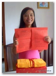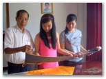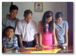 越南关帝景仰者李莹蔚获赠《关圣帝君觉世真经》金卷后发来的照片