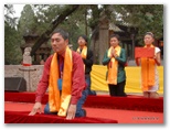 2011年9月16日山西运城,关公网献供镌铭《关圣帝君觉世真经》金光箔长卷给山西运城解州关帝庙