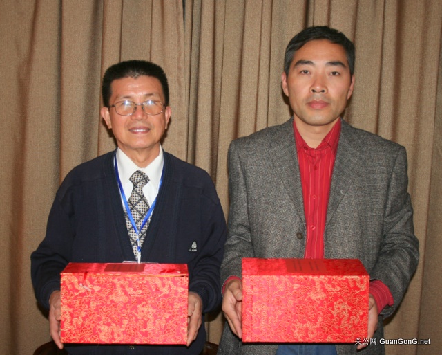 左起:台湾中华桃园明圣经推广学会理事长黄国彰先生,关公网站长关公后裔关志杰
