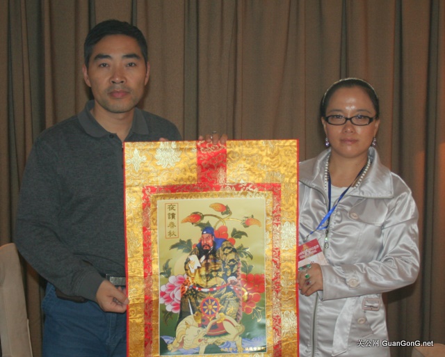 左:关公网站长关公后裔关志杰,右:世界关公文化促进会会长助理诸丽芳女士