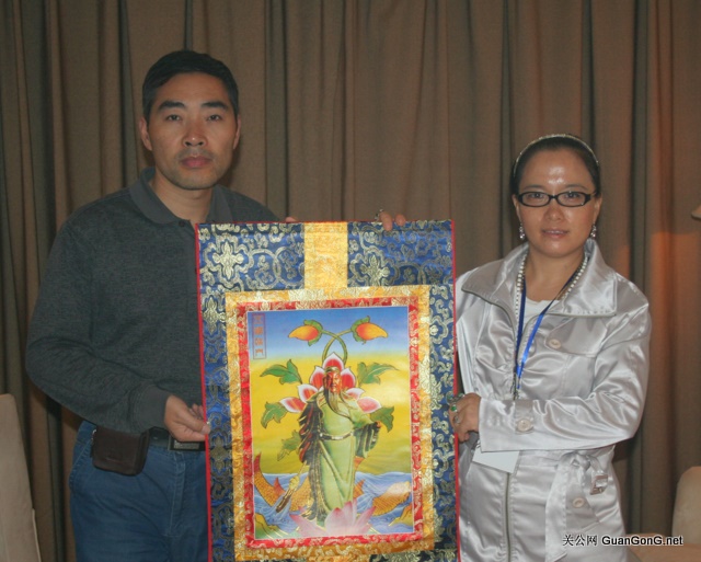 左:关公网站长关公后裔关志杰,右:世界关公文化促进会会长助理诸丽芳女士